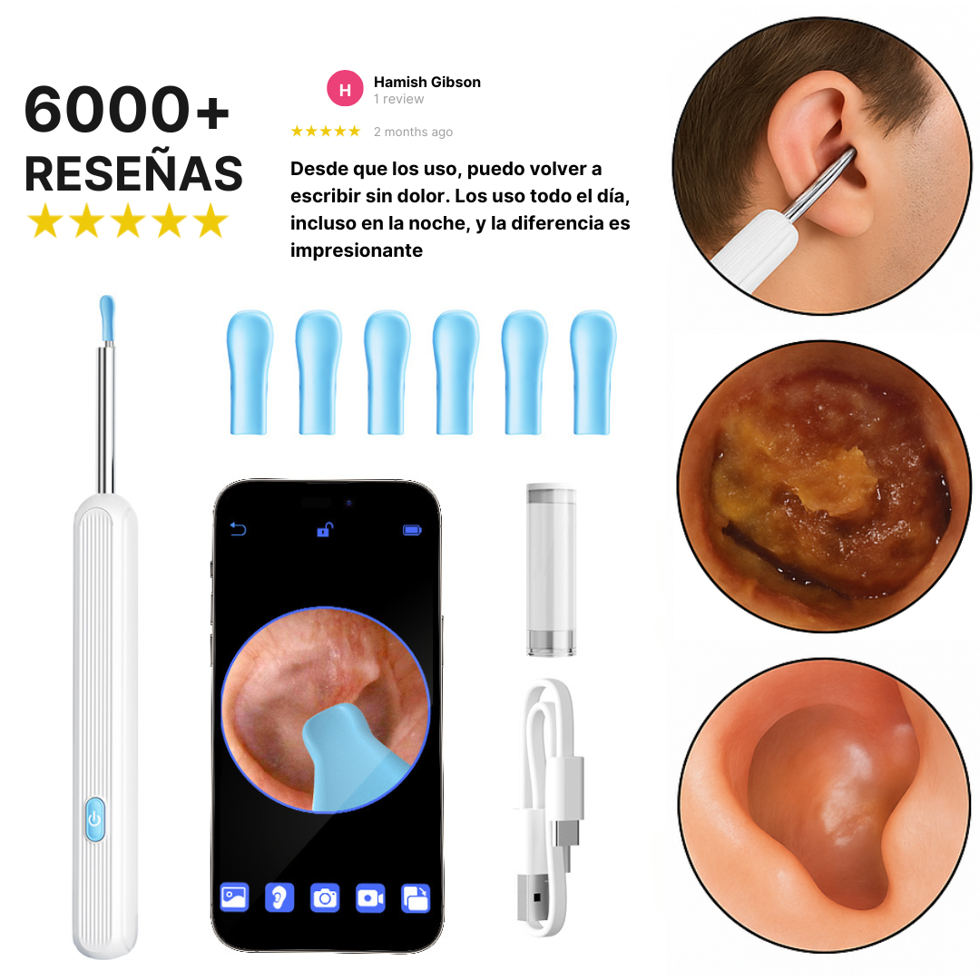 Limpia tus oídos mientras ves todo desde tu celular 📱. Mira en tiempo real cada residuo o exceso de cera, para que elimines todo con precisión, sin dolor y sin usar hisopos.